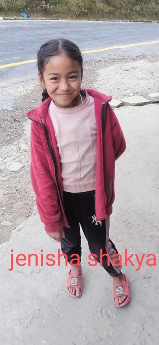 Dívka se jmenuje Jenisha Shayka (nar. 10.08.2015). Jenisha nemá matku. Její otec se jmenuje Dipak Shayka a tvrdě pracuje v horách v Himalájích. Díky tomu jsou s otcem a sourozenci velice chudí. Jenisha jezdí občas do školy daleko od domova i tak už ve 3 třídě umí číst a psát. Dívky by peníze využila pro častější školní docházku, učebnice, jídlo a léky. Jenisha také peníze potřebuje na osobní hygienu.